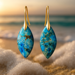 Náušnice Avelina zachycují kouzlo pláže Elafonissi na Krétě, kde moře mění svou barvu na zelenou. Zářivá tyrkysová barva, protkaná zlatými a pískovými žilkami, odráží křišťálově čistou vodu, která se dotýká růžového pobřeží. Tyto kameny dodávají každému vzhledu světlo a hloubku.