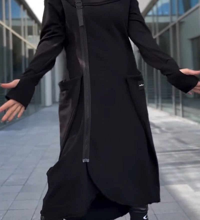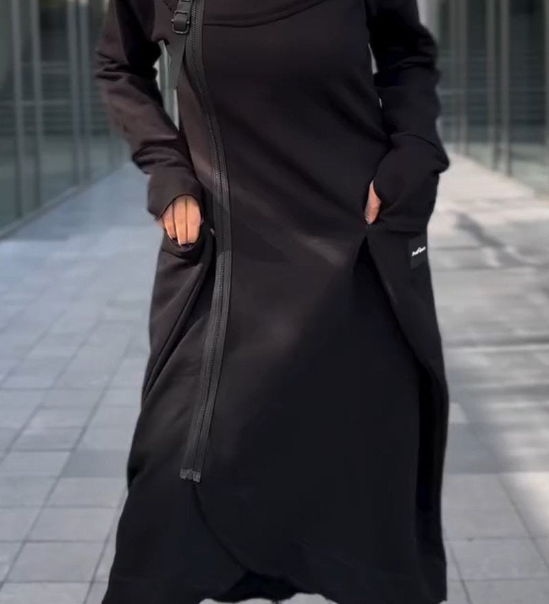Hildegard | Šaty s kapucí a dlouhými rukávy s asymetrickým lemem