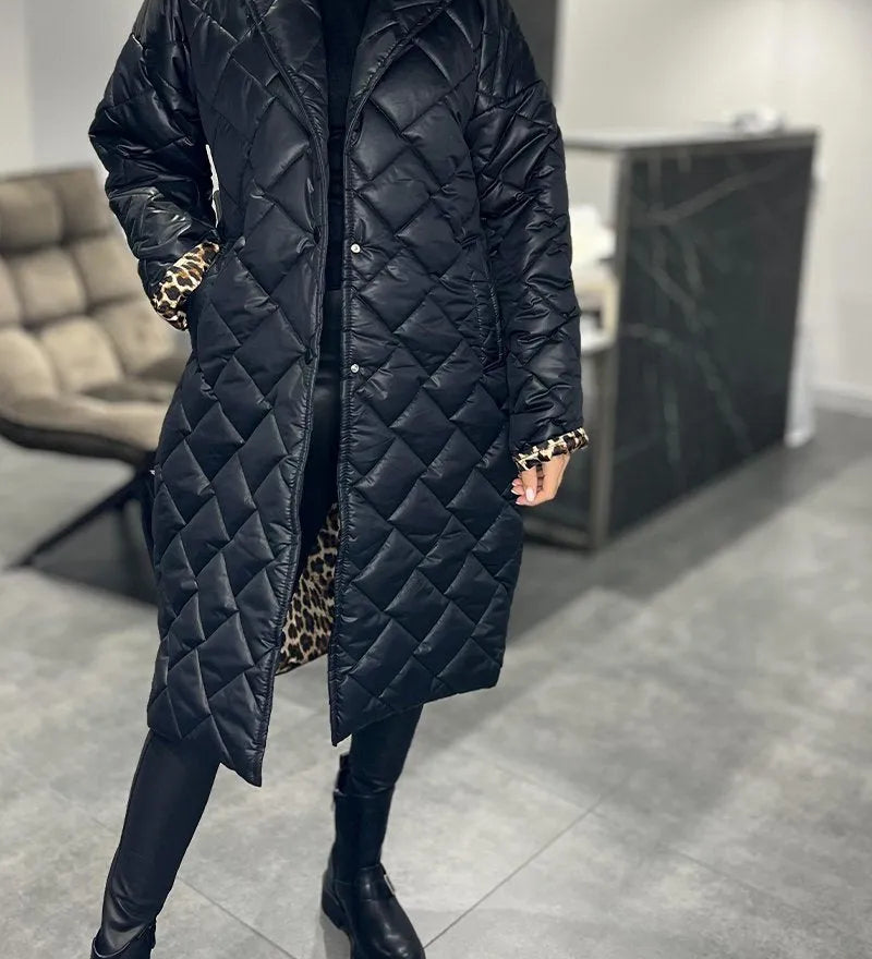 Ofira – Dvouvrstvý prošívaný kabát s leopardí podšívkou