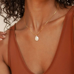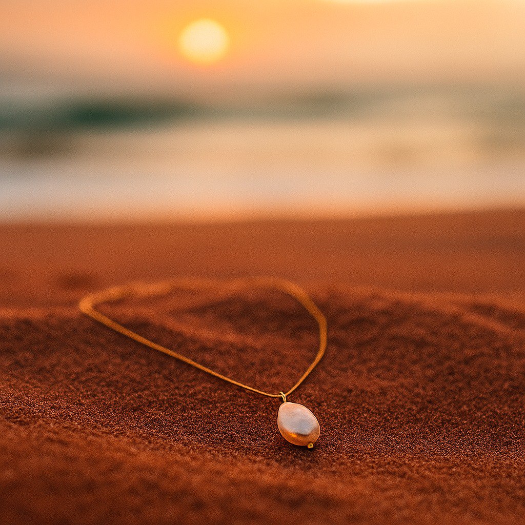 Náhrdelník Meredith je poctou prvnímu světlu Sahary, které jemně svítí na nekonečné duny. Na jemném zlatém okraji se vznáší pečlivě broušená oválná perla, která odráží světlo skryté oázy. Tento šperk je jako šepot úsvitu: čistý, minimalistický a hluboce poetický.