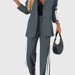 Náš pruhovaný lounge set kombinuje pohodlí a styl – ideální pro všechno, od líných rán až po nejjednodušší nákupy. Díky pružnému a měkkému materiálu a volnému střihu se v tomto bestsellerovém duu budete cítit pohodlně a vždy skvěle, ať už vás den zavede kamkoli.