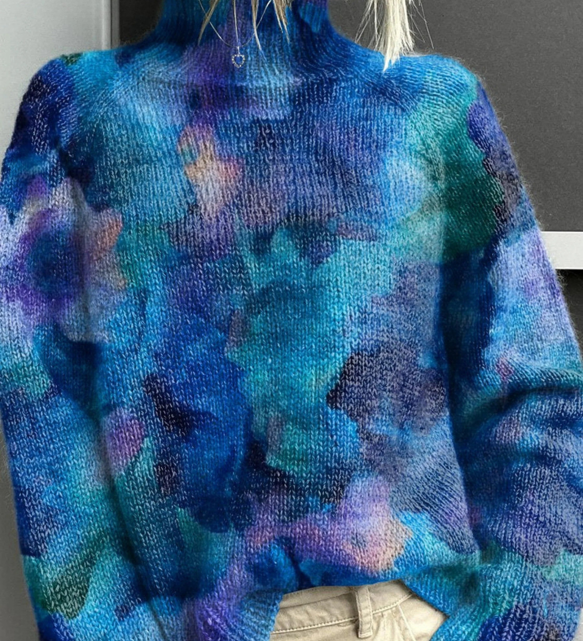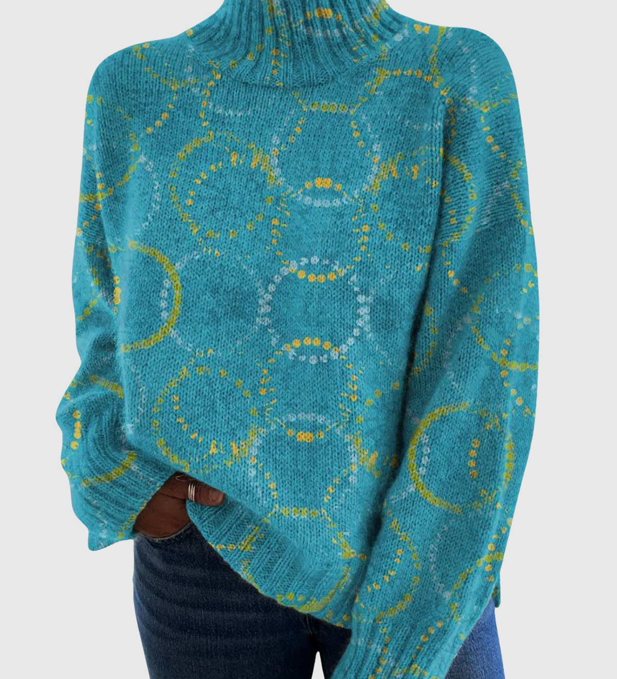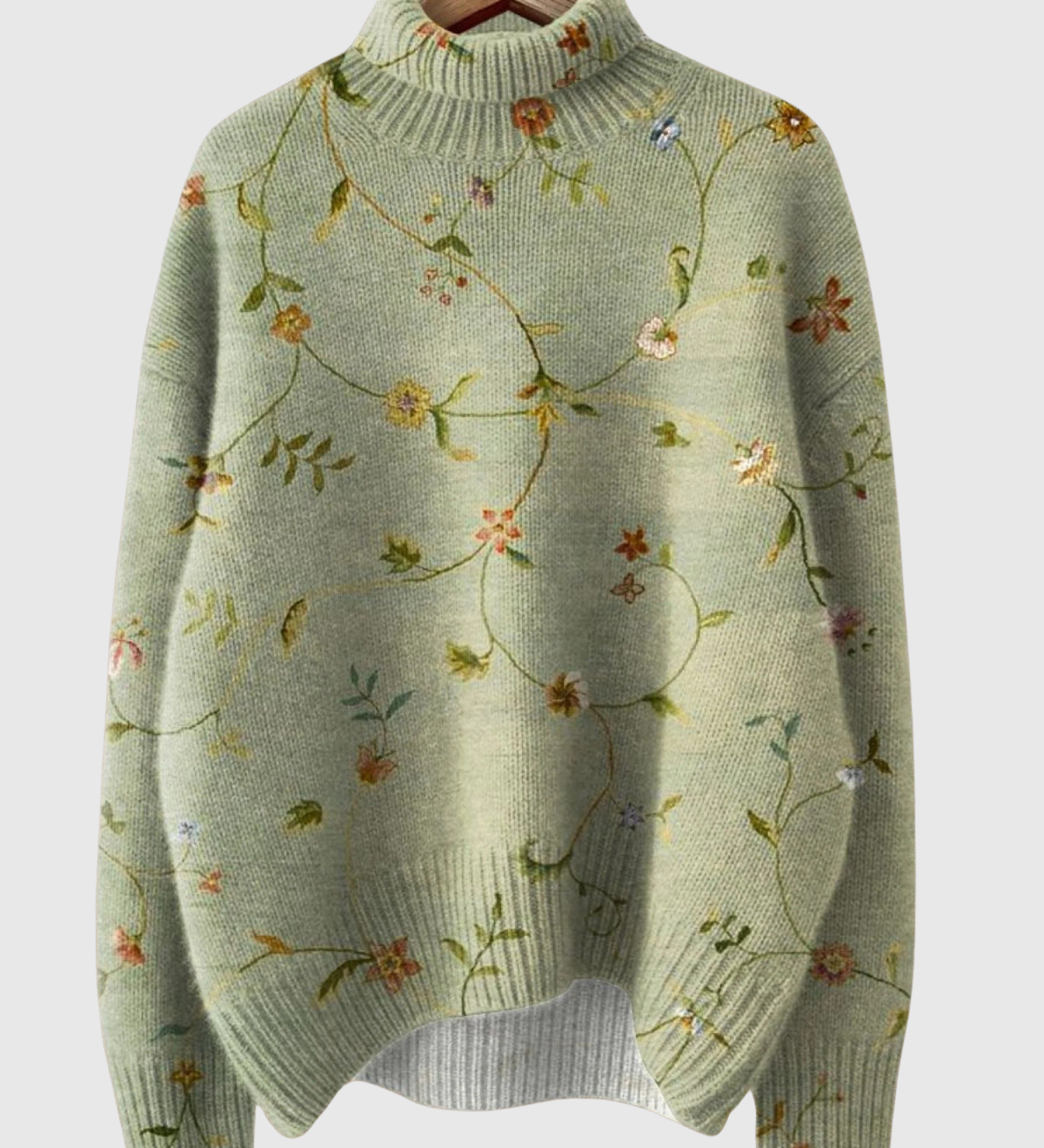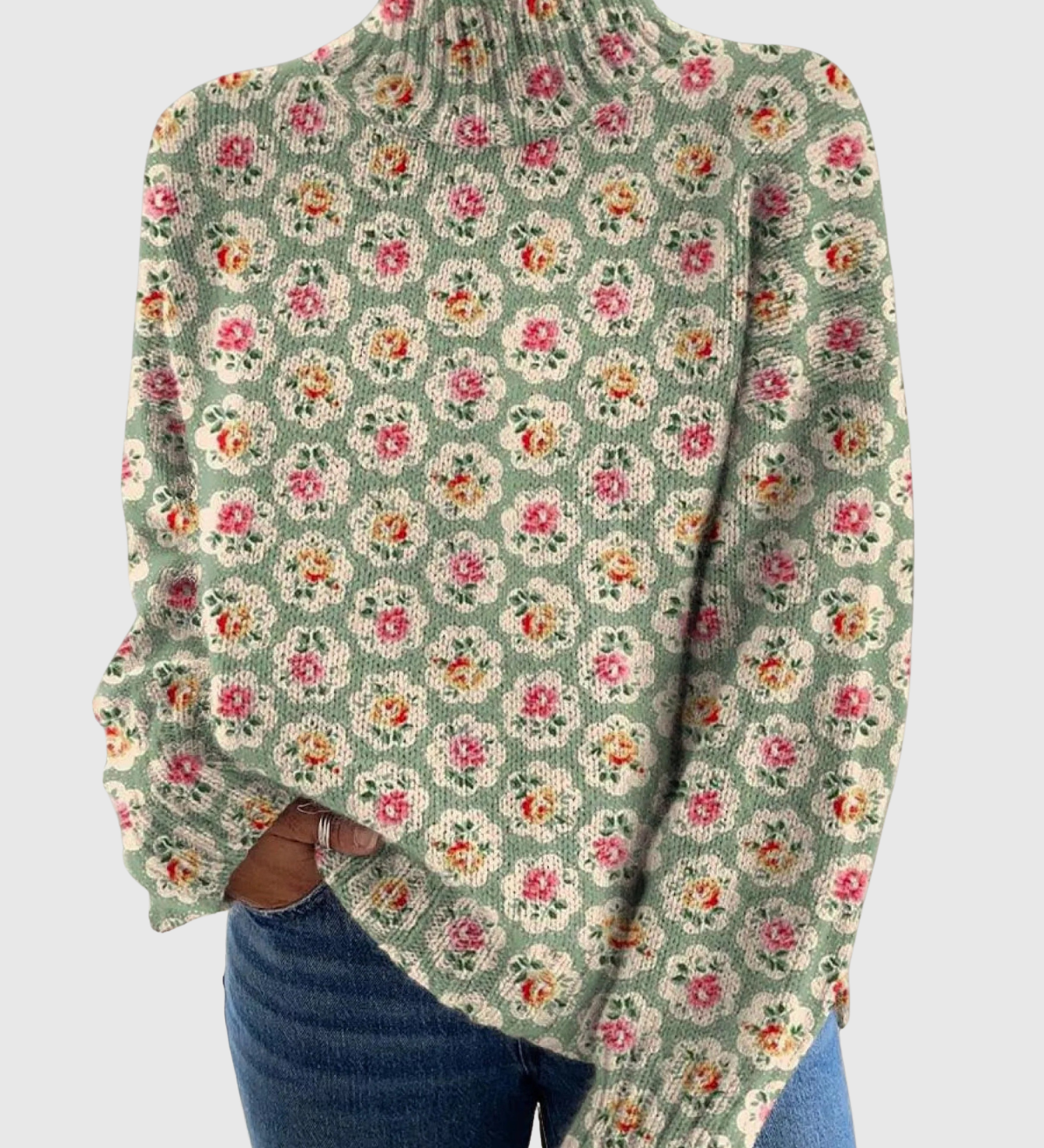 Olinka | Abstraktní Květinový Vzor na Vodě, Tisknutý Svetr s Rolákem