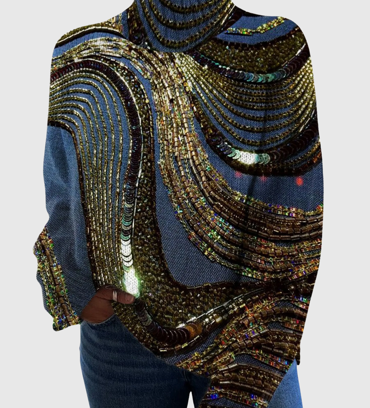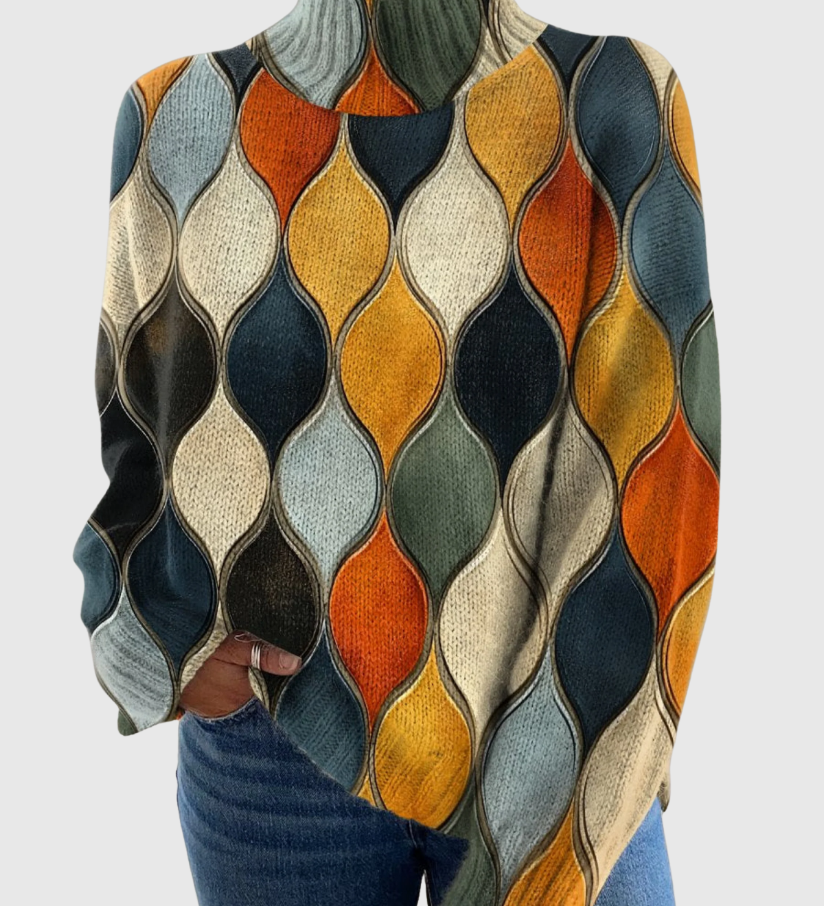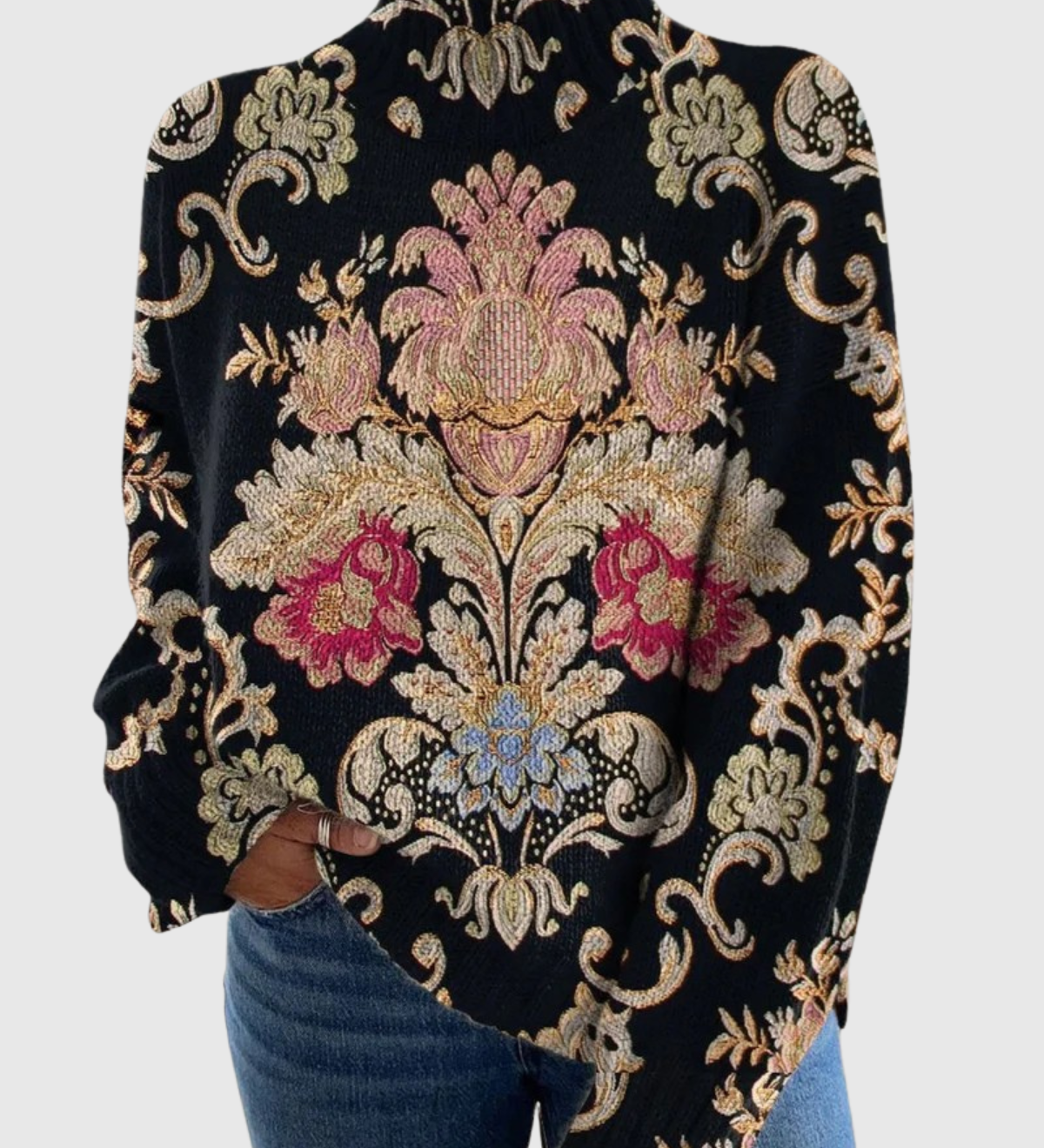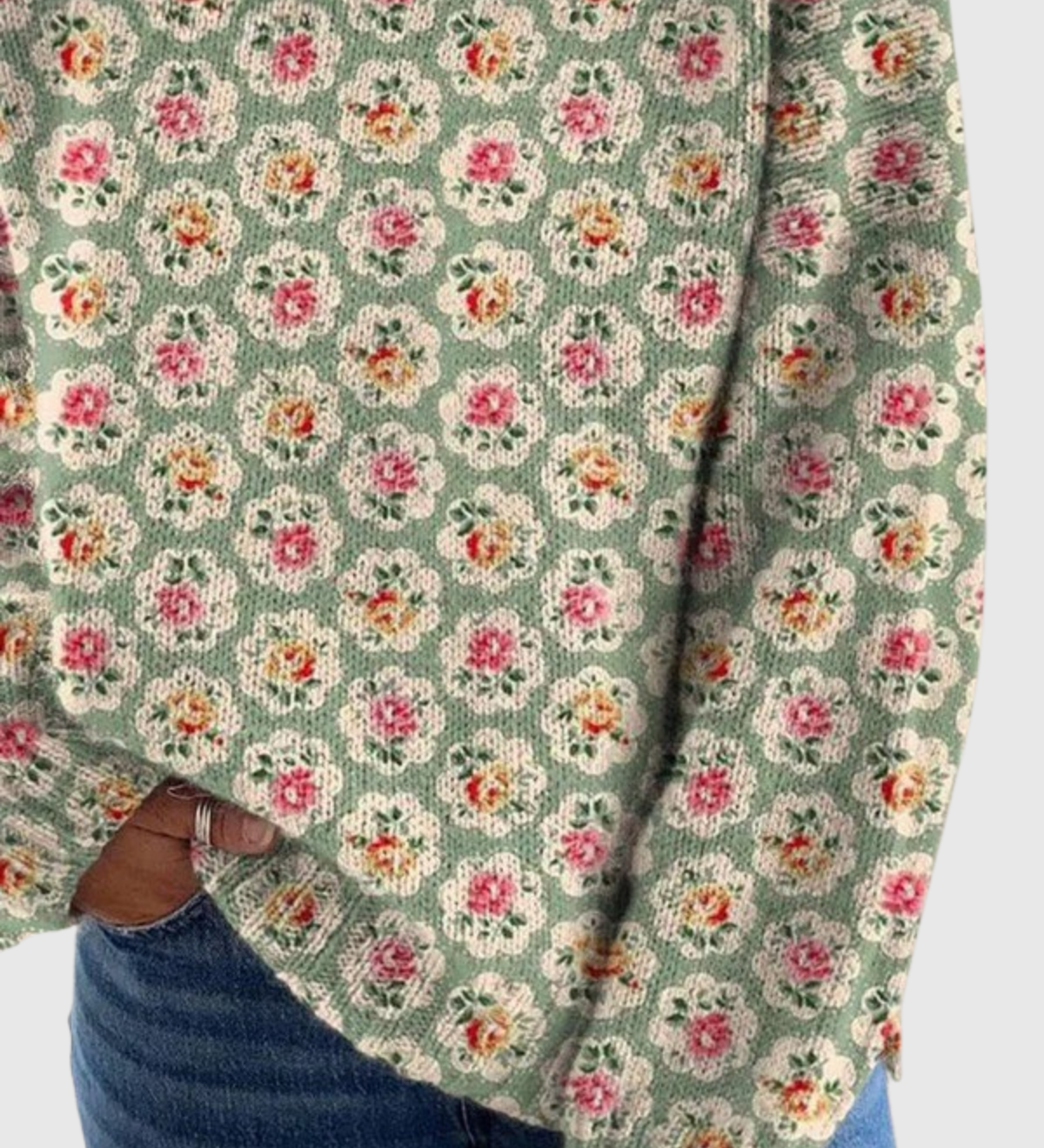 Olinka | Abstraktní Květinový Vzor na Vodě, Tisknutý Svetr s Rolákem