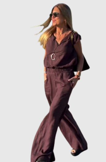 S kompletem Gabriella se každý den stává příležitostí spojit eleganci s pohodlím. Jeho volný střih ti dopřeje naprostou volnost pohybu, zatímco promyšlený design ti umožní cítit se upraveně a sebevědomě v každé situaci. Ideální volba pro ženy, které milují nenucený styl, který se přizpůsobí každému momentu jejich dne.