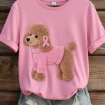V jemném růžovém odstínu toto tričko spojuje teplo a styl s nádechem kouzla. Hlavní ozdobou je roztomilý pudl v svetříku s růžovou 3D stuhou, symbolem naděje a síly. Subtilní, ženský design činí z tohoto trička ideální volbu pro každou příležitost, nabízející pohodlí bez ztráty elegance nebo významu.