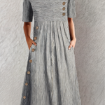 Přijměte lehkost, pohodlí a nadčasový styl se šaty Sofia – elegantními letními šaty s proužky. Materiál je jemný na dotek, střih se nepřizpůsobuje těsně tělu a lichotí vaší postavě přirozeným a půvabným způsobem. Ideální pro teplé dny, kdy chcete být pohodlná a ženská – bez námahy.