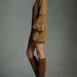 Viktorka | Volná mini šaty s rolákem v vintage stylu z semiše