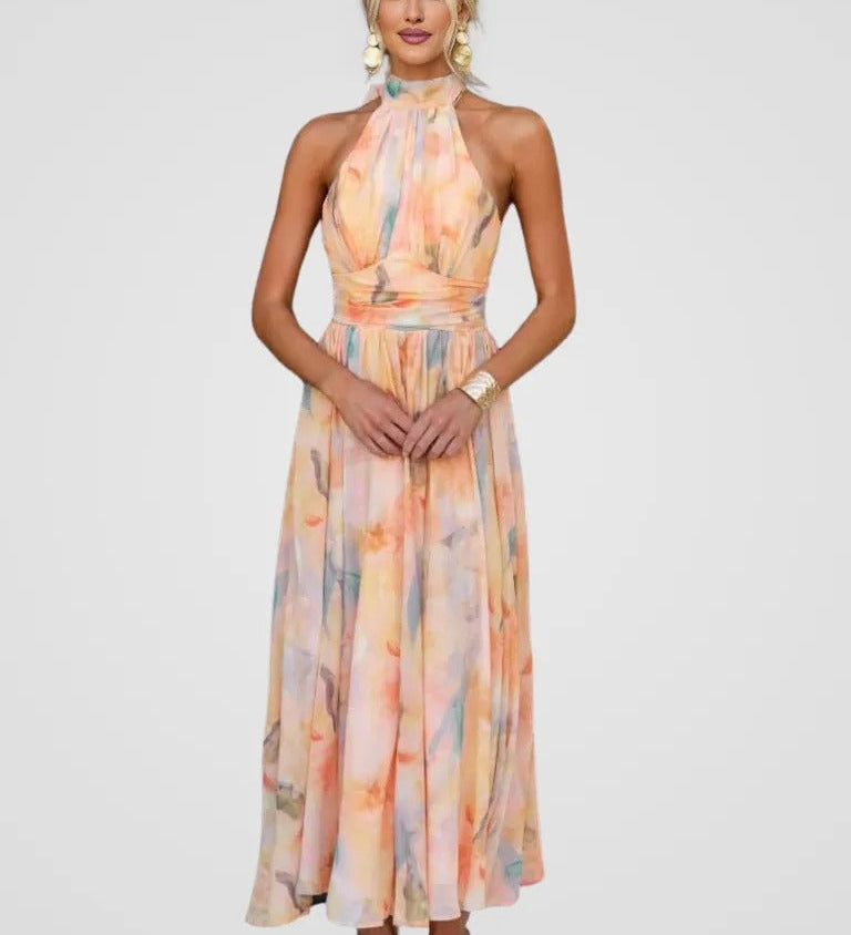 Elena – šaty s halter výstřihem a vysokým rozparkem