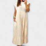 Adriana jsou elegantní plisované midišaty navržené pro snadný styl. S volnějším áčkovým střihem, volánkovými rukávy a jemným splýváním látky jsou ideální jak na běžné výlety, tak na sofistikované příležitosti.
