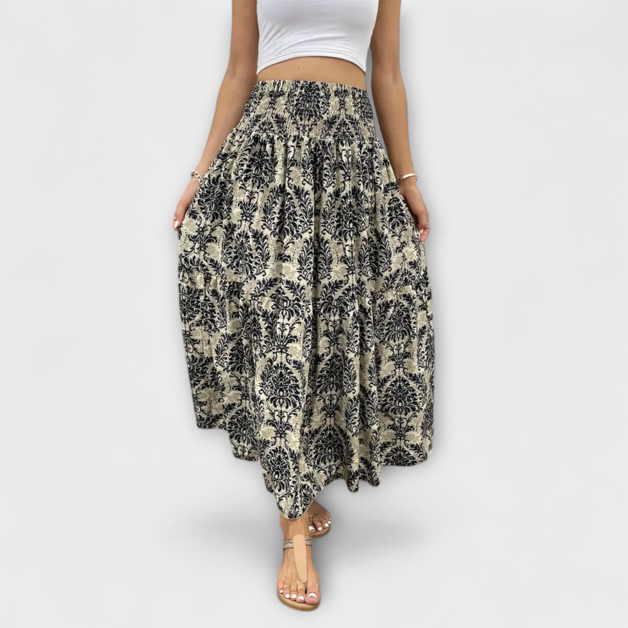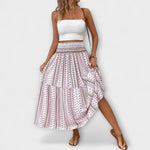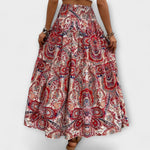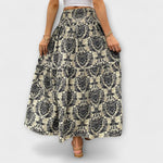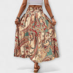 Beáta | Midi sukně s boho potiskem a splývavou látkou