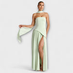 Berenika jsou maxišaty, které spojují dramatický vzhled s rafinovaností díky strukturovanému korzetovému topu bez ramínek, asymetrickému pasu a splývavé sukni. Vysoký rozparek dodává pohyb a půvab – ideální na večerní události nebo luxusní letní příležitosti.