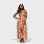 Šaty Romana s potiskem Walk kombinují půvabný pohyb s odvážným stylem – výrazný kousek pro slunečné procházky, stylová setkání nebo dovolenou.