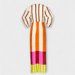 Roxana je výrazný kousek stvořený pro teplé dny a nezapomenutelné okamžiky. S vycpanými rukávy, předním výřezem a kotníkovou délkou spojuje nenucenou eleganci s hravými detaily – ideální na dovolenou nebo letní městské outfity.