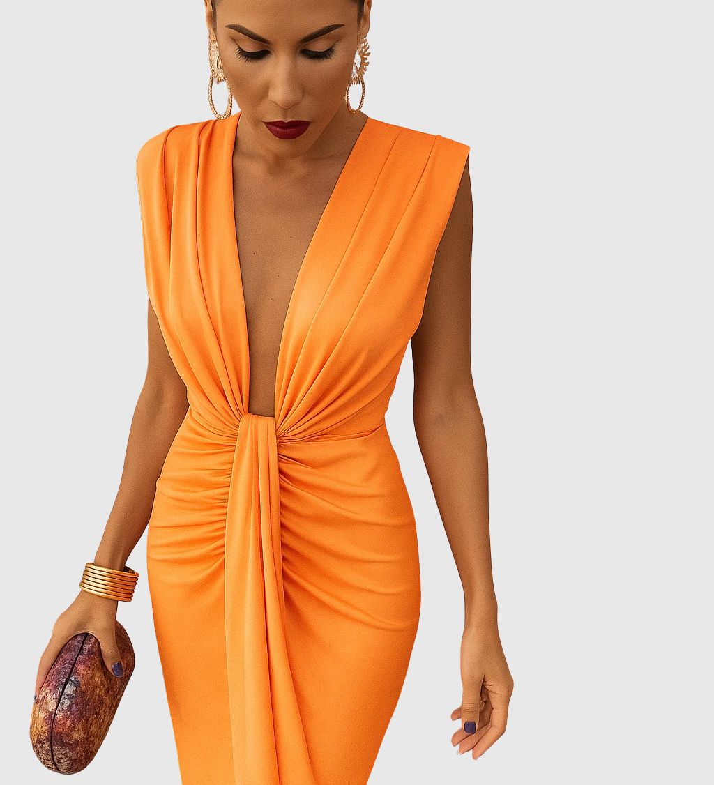 Zina – Elegantní midi šaty s V výstřihem
