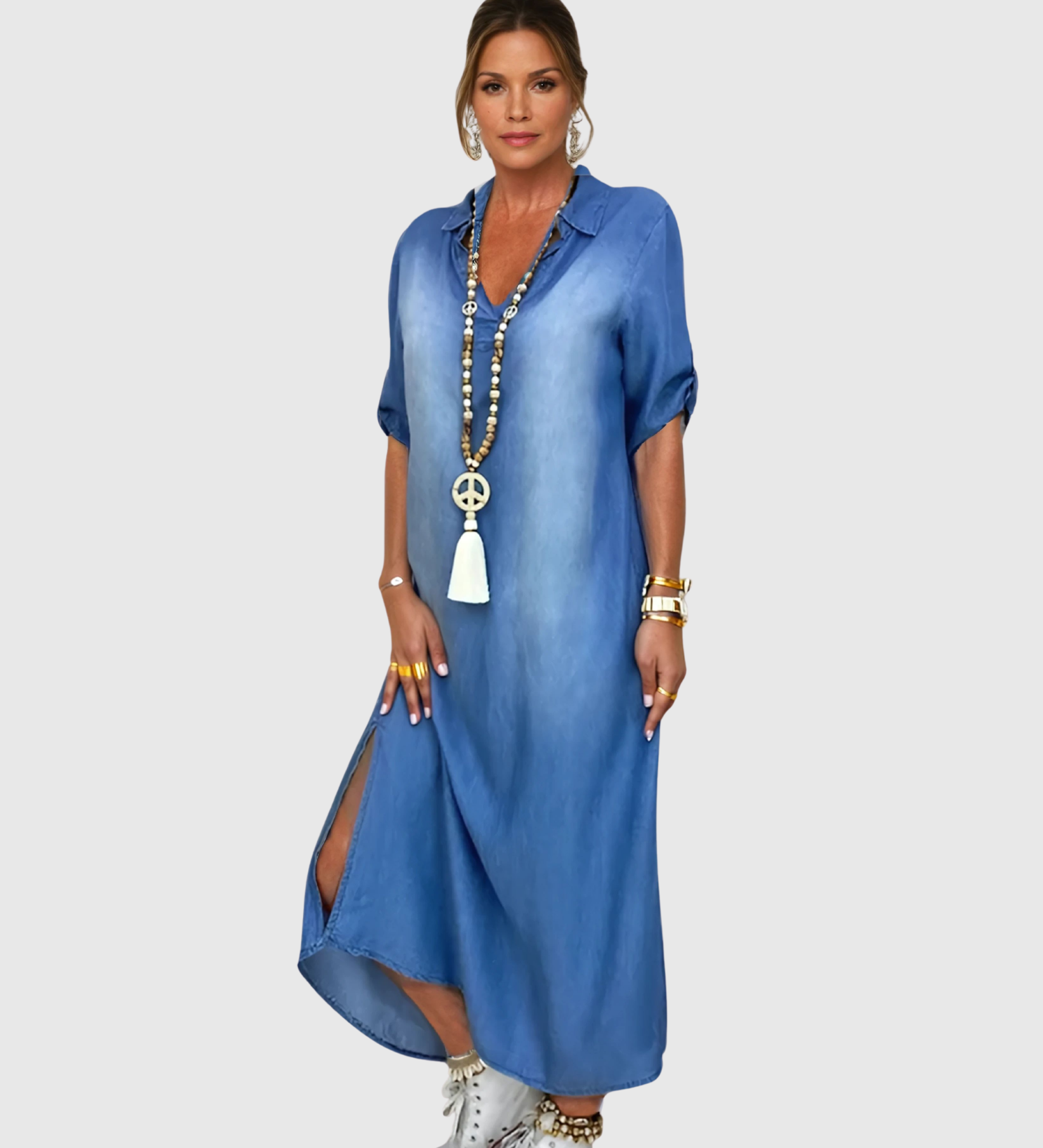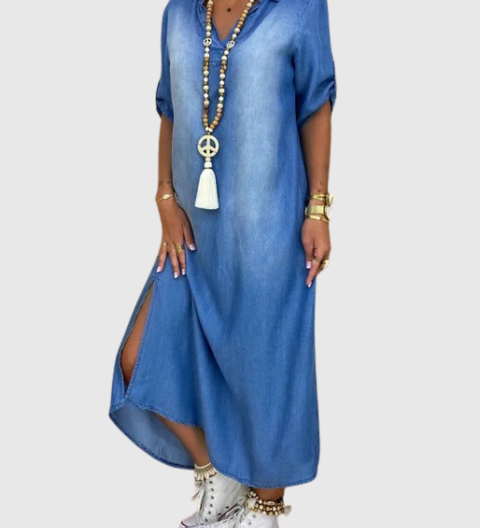 Lea | Dlouhé džínové šaty s bočním rozparkem
